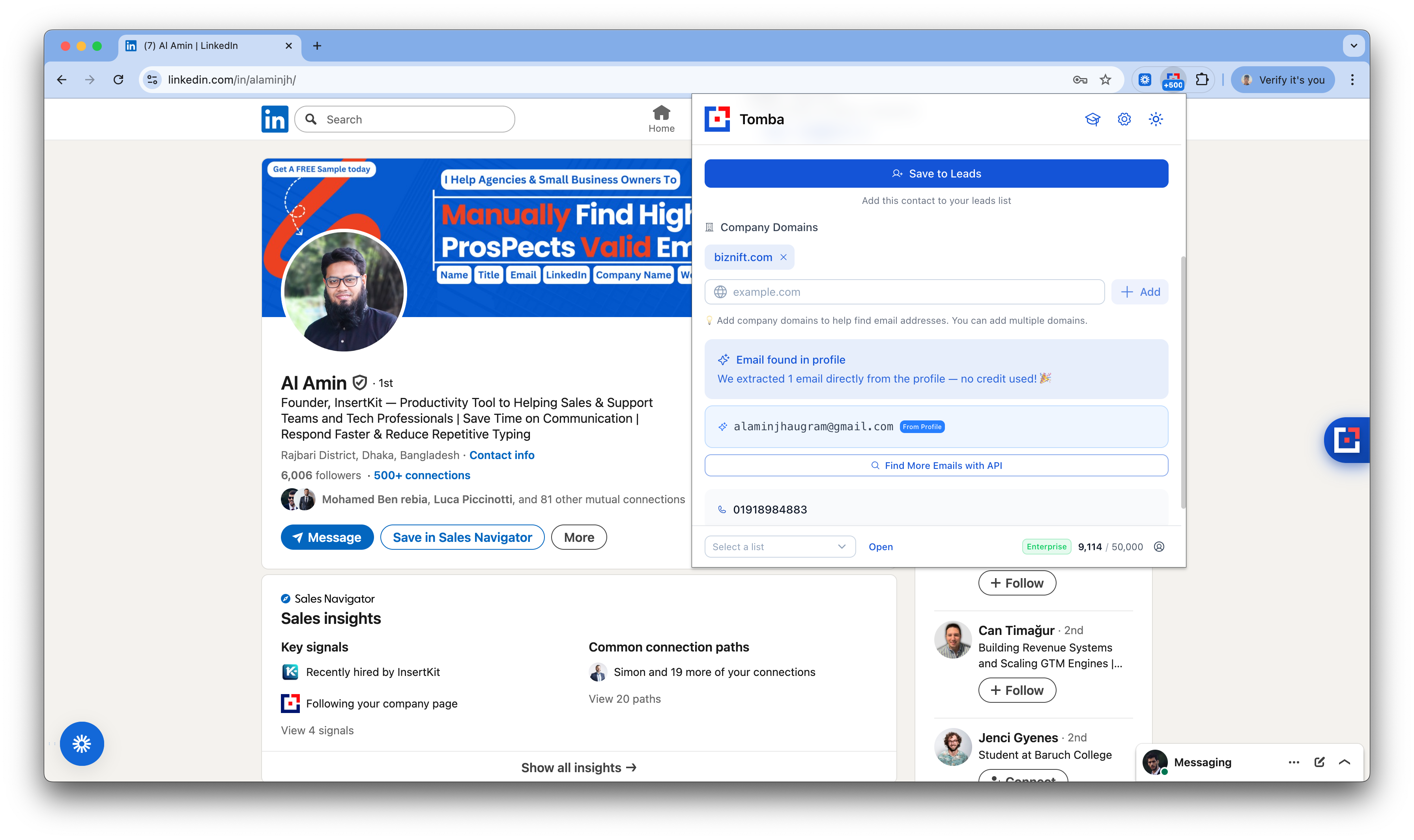 Real-time email verification – Check if an email is valid instantly before reaching out.