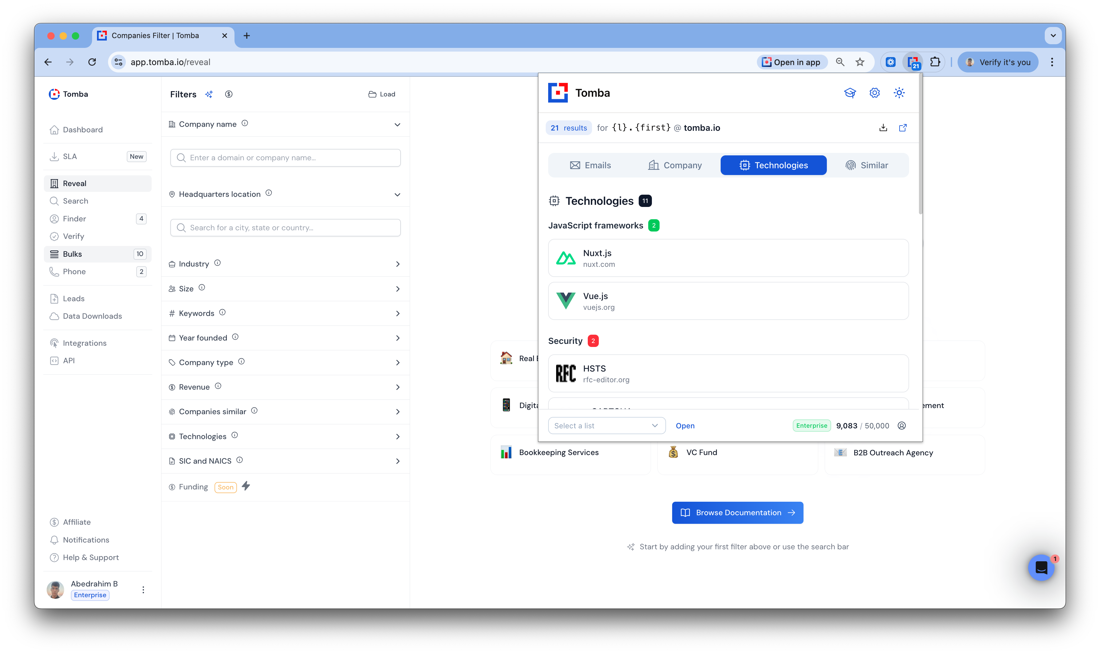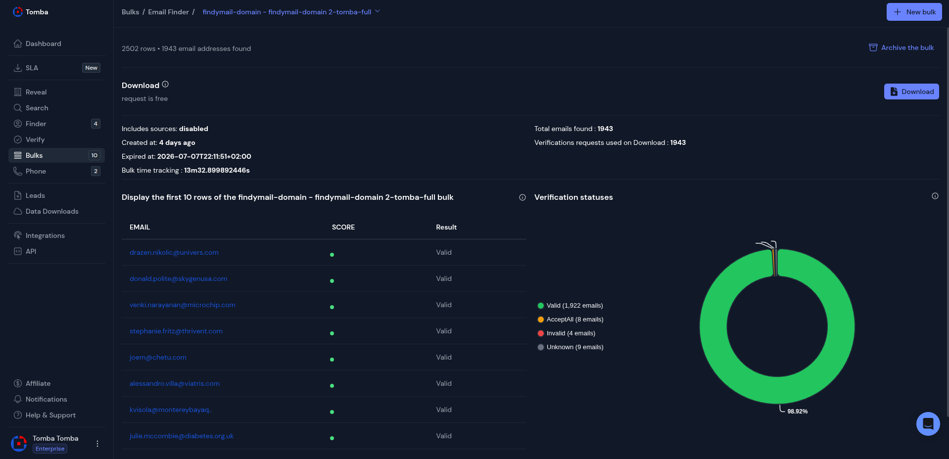 | **Tomba.io** | **1,922** | **76.9%** | — | — |